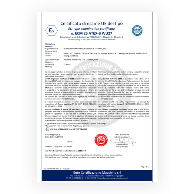 Développé par Beijing Dorland System Control Technology Co., LTD., la tablette PC/PAD EX Pad 07 4G industrielle à sécurité intrinsèque a adopté une technologie avancée d'Allemagne avec un circuit intrinsèquement sûr, un écran tactile de 8,0 pouces et une caméra de 5 mégapixels (caméra avant) + 32 mégapixels (caméra arrière avec mise au point automatique). Ses performances d'étanchéité à l'eau et à la poussière peuvent répondre aux normes IP67.