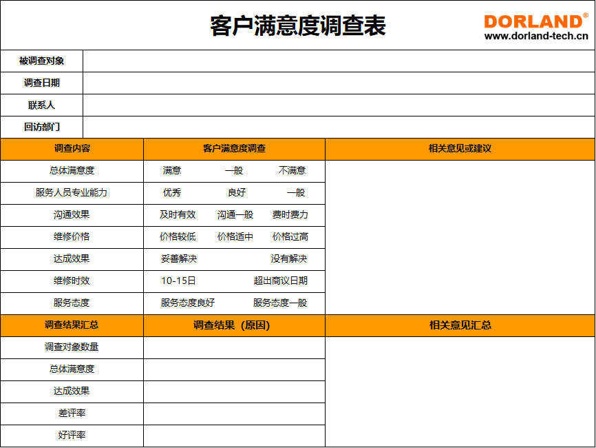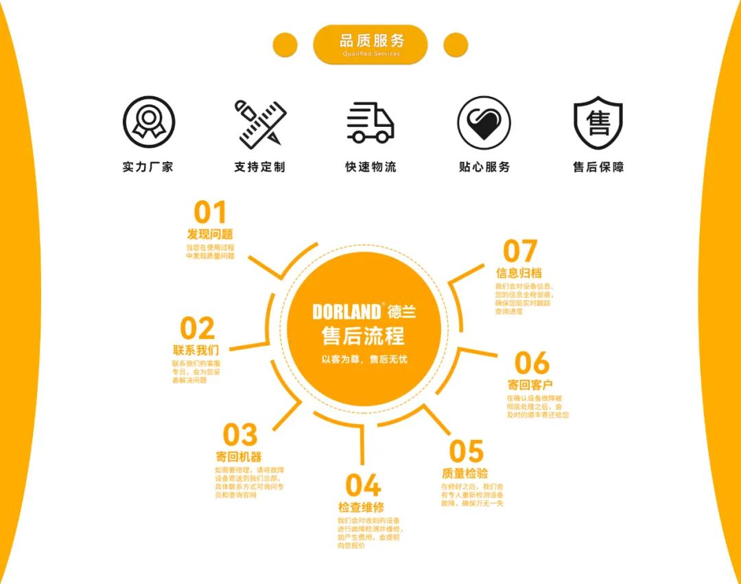 Nous vous invitons sincèrement à nous contacter et à participer à nos questionnaires après-vente pour évaluer nos services, et nous apporterons les améliorations correspondantes en fonction de vos évaluations et suggestions. DORLAND sera caméliorer en permanence le niveau de service, et votre satisfaction sera toujours notre poursuite.